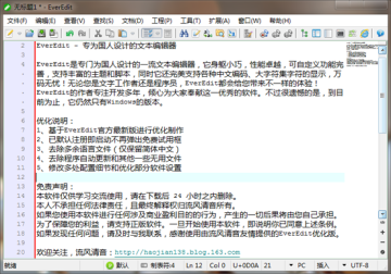 EverEdit是一个快速、轻量级和易于扩展的文本编辑器工具,国外软件,自带简体中文设置,多界面语言,满足更多网友的需求,它可以运行于Windows XP、Windows Vista、Windows 7、Windows Server 2003+等绝大多数Windows操作系统上,小巧精致的EverEdit是Windows上默认的Notepad很好的替代品。除了大幅度加强的文本编辑能力之外,EverEdit也为网页作者、程序员和管理人员提供了大量的可定制特性,可以大幅度地提高您的工作效率!