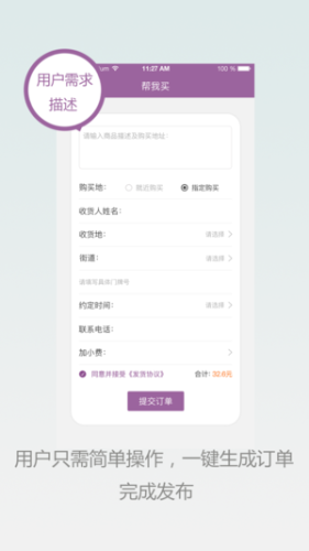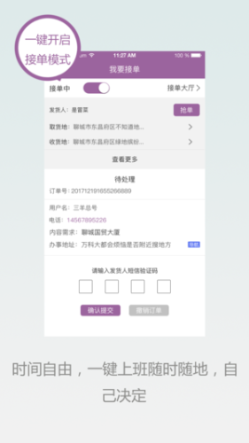 用户通过APP发布需求,附近的兼职快送人员迅速接单,并且迅速完成任务,