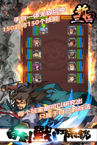 新三国手游是独特的单机2D竖屏游戏,是不是颠覆了大家对打打杀杀的三国手游认知,在新三国游戏下竖屏布阵玩法算得上原创,五个主将,二十个副将,外带军师一个,就可以在大地图上见谁干谁了,你的战场是13州52郡,攻城拔寨就在新三国手游!