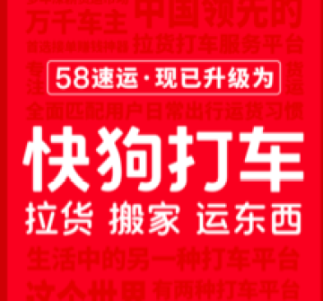 2018年8月20日58速运正式更名为“快狗打车”。快狗打车是“一家拉货打车服务平台”。快狗打车通过先进的智能调度系统,随时随地的为个人、商家及企业用户提供快速、安全、省钱的短途物品运送服务。目前快狗打车已拥有超过100万名平台注册司机,业务范围已覆盖6个国家及地区、339个城市的近800万用户。