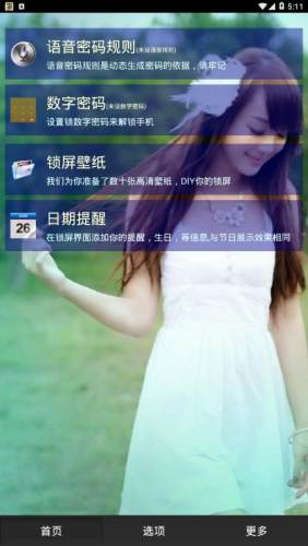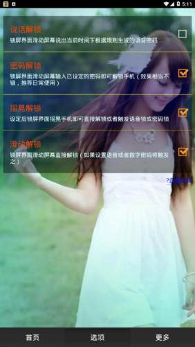 语音解锁+摇晃解锁+密码解锁+任意滑动解锁四种解锁方式任你选!