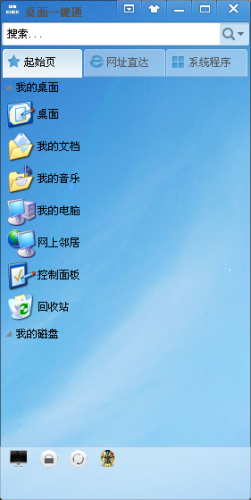 桌面一键通是一款漂亮易用的桌面管理程序,体积小巧,界面美观,功能易用是一键通的软件特点,软件自带一键黑屏、锁定电脑、清空冗余和重建图标缓存等功能。