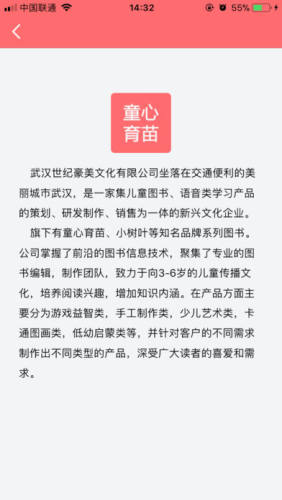 童心育苗APP客户端是武汉世纪豪美文化有限公司推出的一款教育服务APP,这款童心育苗APP客户端是基于移动端开发的应用软件,主要为用户提供便利的教育服务!