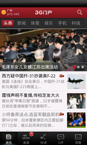 3G门户新闻安卓版是3G门户唯一官方手机新闻客户端。为所有移动互联网用户提供最新全球资讯、精彩直播现场、原创“跑调”系列周刊及有才的网友评论,同时可享受最优秀的移动阅读体验。