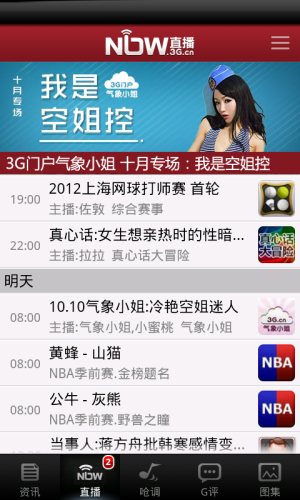 篮球战报、绿茵角逐、娱乐盛典、电影首映、明星专访、达人访谈……各种直播,第一时间送上你最感兴趣的事态动向。