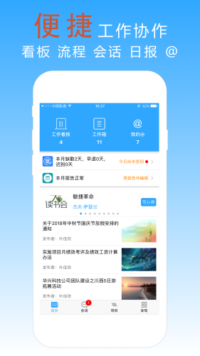 工作协作:即时通讯(IM)、工作流、工作看板以及OPPM等功能提供了不同层次的工作协作能力,协作可以是项目组、企业员工、部门之间,也可以跨越到参与项目的业主、监管方以及各实施方。