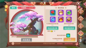 每天已婚玩家,可以通过道侣进行许愿。收取果实后能提升不朽界等级,当收集满材料还能用于突破等级,提升人物属性。