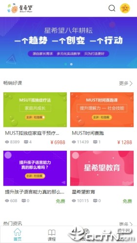 星希望app,给孩子最好的学习环境,随时随地,想学就学;在星希望app,可以让孩子获得社交技能、语言沟通能力、思维能力、心智能力等多项能力,其拥有更完整的服务体系,为孩的未来保驾护航,为了方便孤独症患者及其家属在移动端学习。