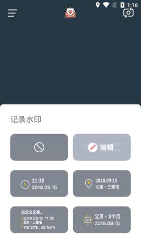 拍照片时,智能添加时间、地点、经纬度、宝宝出生计数等样式,记录生活点滴。