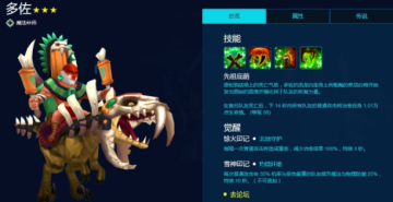 多佐,驯龙小队中的强大萨满。其主动技能是能够通过牺牲自身的生命值来回复整个队伍的血线,而各种各样的被动技能则进一步增强了他的回复能力,是一名出色的魔法补师。