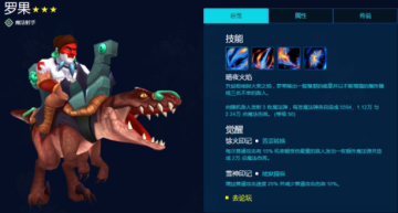 罗果,驯龙小队的法师。其主动技能能够同时对多个玩家造成大量伤害,被动技能既能增强自身的技能伤害,更有一定几率强化自身的普通攻击,这些技能能够使其成为一流的射手。