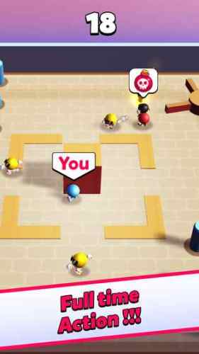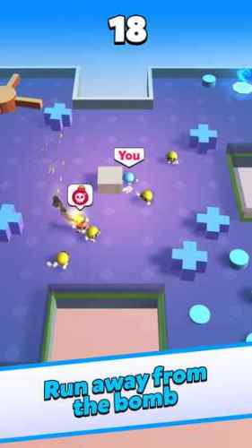 1、简洁3D游戏画面,刺激的冒险对战等你来体验,控制你的角色小心躲避手持炸弹的玩家;
