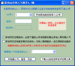 晨风qq空间留言助手,支持多段内容循环发送,支持各种留言代码,支持验证码自动提取,支持多qq号迅速切换无限发送留言,支持待留言qq号的保存和管理。