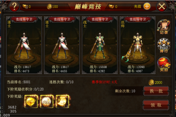 (2)每日有10次免费挑战机会,最多可额外购买10次。战斗胜利,则双方排名互换;失败,则保持当前排名不变,;