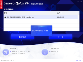 您可以选择要分割的磁盘,点击下一步,软件提示正在获取磁盘分区,本例中选择的是TOSHIBA 931.51GB的硬盘进行演示,如图: