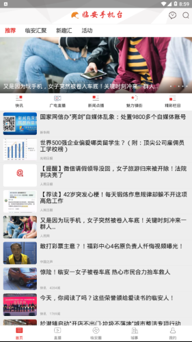 临安手机台app,临安的大大小小的内容都在这里。这是一个比较便捷的生活体验方式,各种功能都提供大家,广点直播,新闻点播都可以在这里看到。