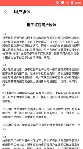 拆手红包app是一款社交红包软件,软件拥有丰富的红包,用户可以随时随地折红包手机赚钱,软件使用简单便捷,有兴趣的朋友欢迎前来下载使用。
