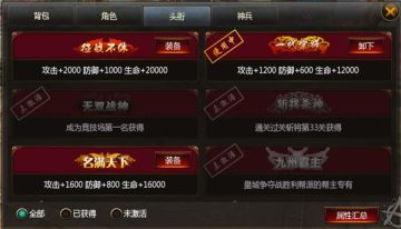 3. 所有已获得的头衔其属性100%附加给角色,但同时只能装备一个头衔