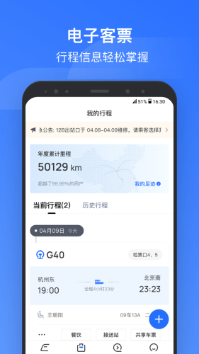 【电子客票】:全方位行程管理,智能同步12306账号行程;