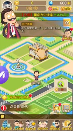 2、丰富多彩的卡通画风,在没有金钱时可以不断点击别墅产出金币哦,而且别墅升级后产出金币更多哦;