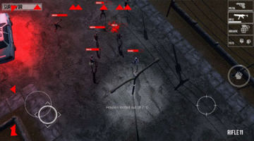 一款僵尸射击游戏,在设计上与传统的僵尸游戏完全不同,采用了上帝的视角与双摇杆的操作方式,经过小编尝试,发现这操作难度有点大,一般的玩家估计很难掌握,僵尸分布比较散,很容易卡主玩家的走位,而且还得边走边射击,不然很容易被包围,不过换画风还是很赞了,3D的写实风格与黑色的背景继续搭配,充满的展现的末日求生的游戏的题材。