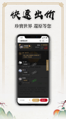 让艺术收藏品爱好者可以不受地域限制并提供随时随地分享和交流的一站式微拍卖服务。