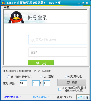 3366定时抢礼包工具发布,可以帮助玩家自动定时领取奖品,最新1.0修复版推出,修复了默认的错误时间,增加保存时间配置等功能,需要注意的是本软件为辅助兑换,并不是无条件兑换,所以请确保你有足够的金币。
