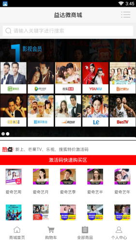 益达微商城是一款专注于各大视频网站会员的app。有了益达微商城app,就能在线优惠购买相关视频会员的激活码。也能直接购买会员的账号,让你更省钱,想要试试看的朋友快来下载吧!