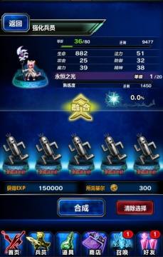 游戏中兵员的养成主要包括强化和觉醒,在强化时,玩家需要选择强化的兵员,再选择要合成的素材,这些素材可以是一般的兵员,也可以使用经验值专用兵员,一次最多可以选5个素材。而选择好之后,会显示要付出的基尔,以及可获得的经验值数,确认之后即可强化。