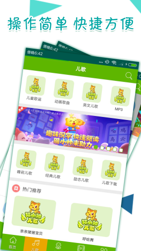 经典儿歌、动画歌曲、英文歌曲、流行儿歌、好习惯儿歌、睡前故事、童话故事等系列随手拈来