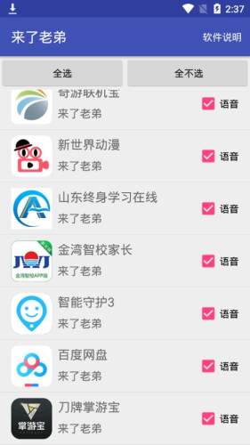 来了老弟app是一款手机小工具软件,软件可以帮助用户将手机安装应用的开机问候语设置成抖音黑河腰子姐来了老弟的语音,非常带感有趣,觉得不错的朋友欢迎前来下载使用。