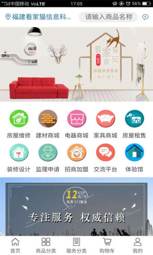 看家猫,一个家装服务平台,汇聚全球家装好材料,做线上精品房屋领跑者,全方位更好地集聚客户需求,提供优质服务,持续为广大客户创造最大价值,依托互联网技术,卓越平台为“家”保驾护航。