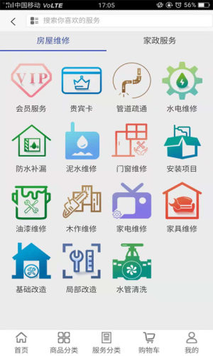公司自成立以来,紧紧围绕“专业化”的服务标准,以“我用心、你放心”的服务精神促进企业发展,以 “一条龙服务”为宗旨,做到一站式高效便民服务。公司工程部技术维修团队经过专业严格培训考核,对房屋装修有着丰富的理论知识和较强专业的技能,并取得相关专业等级的资格证书。一方面,公司为业主客户提供各种房屋装修服务,看家猫会员每年享有12次免费维修服务项目,具体内容涵盖:灯具更换、瓷砖维修、水管维修、卫浴维修、墙面粉刷、防水补漏、木作维修、泥瓦维修、家具维修、家电维修、打孔安装、局部改造、整体翻新等服务项目;另一方面,公司依托互联网技术,搭建线上家居建材商城采购平台,打造一体化商家门店渠道,线上线下结合的互联网+模式,独具一格的运营模式为平台用户带来便捷服务。