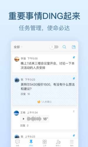 未确认的DING统一管理,找到新回复不再难,重要的DING先钉住,一目了然,DING独立搜索,找DING不再难