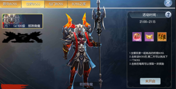 世界BOSS每天晚上21:00开启,全服玩家一起挑战,击败世界BOSS能获得大量的经验、元宝,以及稀有道具等。