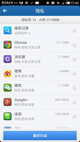 为你清理浏览器搜索记录,上网历史,短信,通话记录,账号密码等隐私信息,确保隐私不泄露。