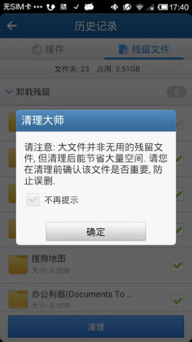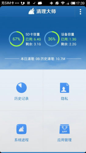 清除大师Clean Master是一款系统垃圾清除工具,清除的内容包括缓存,无用的文件夹,邮件、地图、play的搜索数据,浏览器的历史,剪贴盘,另外还可以清除一些升级的应用安装包。它还可以通过结束当前运行的进程来节省RAM的空间来提高手机的运行速度,延长电池的使用时间。在不需要超级用户的权限下,通过清理大师综合的清理,会为您的空间节省几MB甚至几GB的空间。