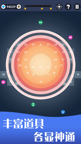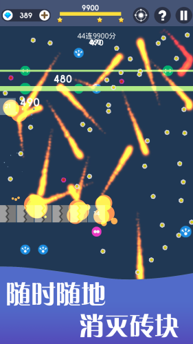 这是超火的弹球消除小游戏!你的目标是在砖块到达顶端检查线之前尽可能获取高分。玩家需要选择发射时的瞄准路线,并计算反弹路线,力求让圆球在方块之间尽可能多的反弹,在方块移动到地面之前,尽快的消除掉屏幕中出现的方块。