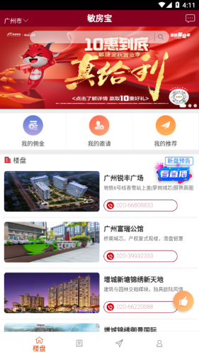 敏房宝app是敏捷集团推出的房地产全民经纪人平台,平台可以让用户推荐亲朋好友买房赚取佣金,还可以查看敏捷集团旗下全国各地的优质楼盘信息,觉得不错的朋友欢迎前来下载使用。