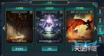 公会系统是《天使降临》的特色玩法之一。加入公会之后,玩家就能激活远古封印、守护神兽、公会驻地、公会争霸等公会特有的玩法。其中,公会争霸更是激情澎湃的多人跨服竞技玩法,为了公会的荣耀而战,我猜着就是玩家最为期待的了。