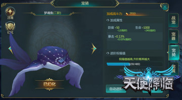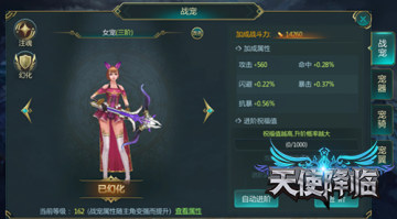 进行升级。升级后,增加游戏角色对应的属性,并且获得新的战宠形象,可以直接在场景中展示出来。