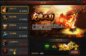 1.达到60级的玩家可在每天18:45-19:00点击游戏界面龙魂之刃活动图标进入活动界面,点击前往挑战参与。