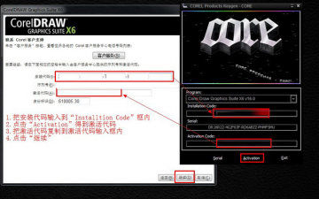 19、第十九步:激活过程1.把安装代码输入到“Installtion Code”框内 2.点击“Activation”得到激活代码 3.把激活代码复制到激活代码输入框内 4.点击“继续”按钮。