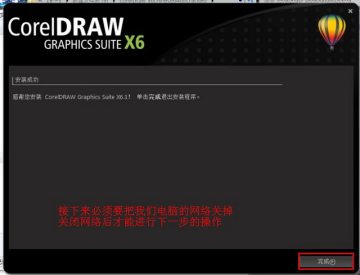 9、第九步:正在安装中正在安装CorelDraw x6 32位【Cdr x6 32位】。请耐心等待一下...... 。10、第十步:安装完成(没激活版)点击“完成”。下面的操作必须要把我们电脑的网络关掉。