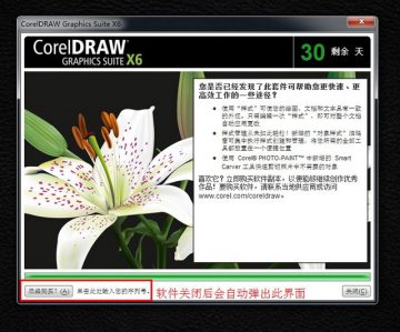 20、第二十步:激活完成这样我们的CorelDraw x6 32位【Cdr x6 32位】就激活完成了。下面我们打开软件看看。21、第二十一步:注册会员界面,关掉它就可以了 。22、第二十二步:CorelDraw x6 32位【Cdr x6 32位】安装完成。