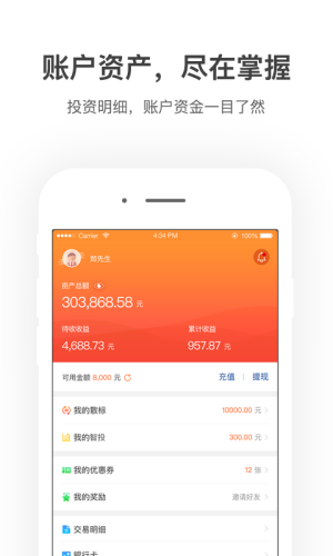 汇盈金服是一款互联网金融信息服务软件,拥有众多投资产品,安全有保障。新手注册即送888元红包,专享7.2%历史回报率,好礼享不停。众多优质品牌,多重保障,值得您的信赖。产品丰富多样,精选优质资产,投资期限丰富,任您选择。