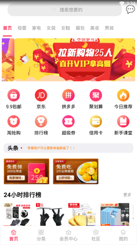 汇客熊是一款网上购物,优惠券分享查找的电商App,优选用户喜欢的商品,收藏方便以后的购买。