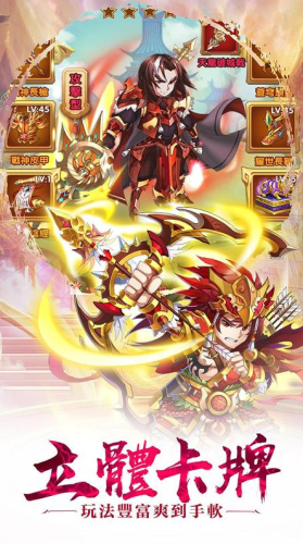 乱世江山,人才辈出;名将美人,不可胜数。 《乱斗英雄志》,数百种英雄各具特色,打造炫美视听盛宴!立体卡牌特色玩法,引领全新游戏体验。