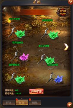 玩家达到50级,开服达到第3天可以开启。玩家每天有3次挖矿机会,开采的矿石等级越高,获得的奖励越丰厚。矿石开采期间,可能被其他玩家偷矿,成功守住矿石可以避免奖励损失。