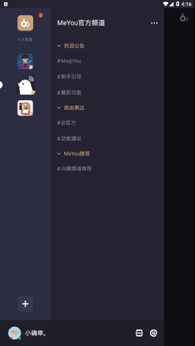Meyou app,超多干货供你分享,你想要看的内容都有分类,多房间模式,看看和谁有共同的爱好,房间不限人数,快来加入吧。